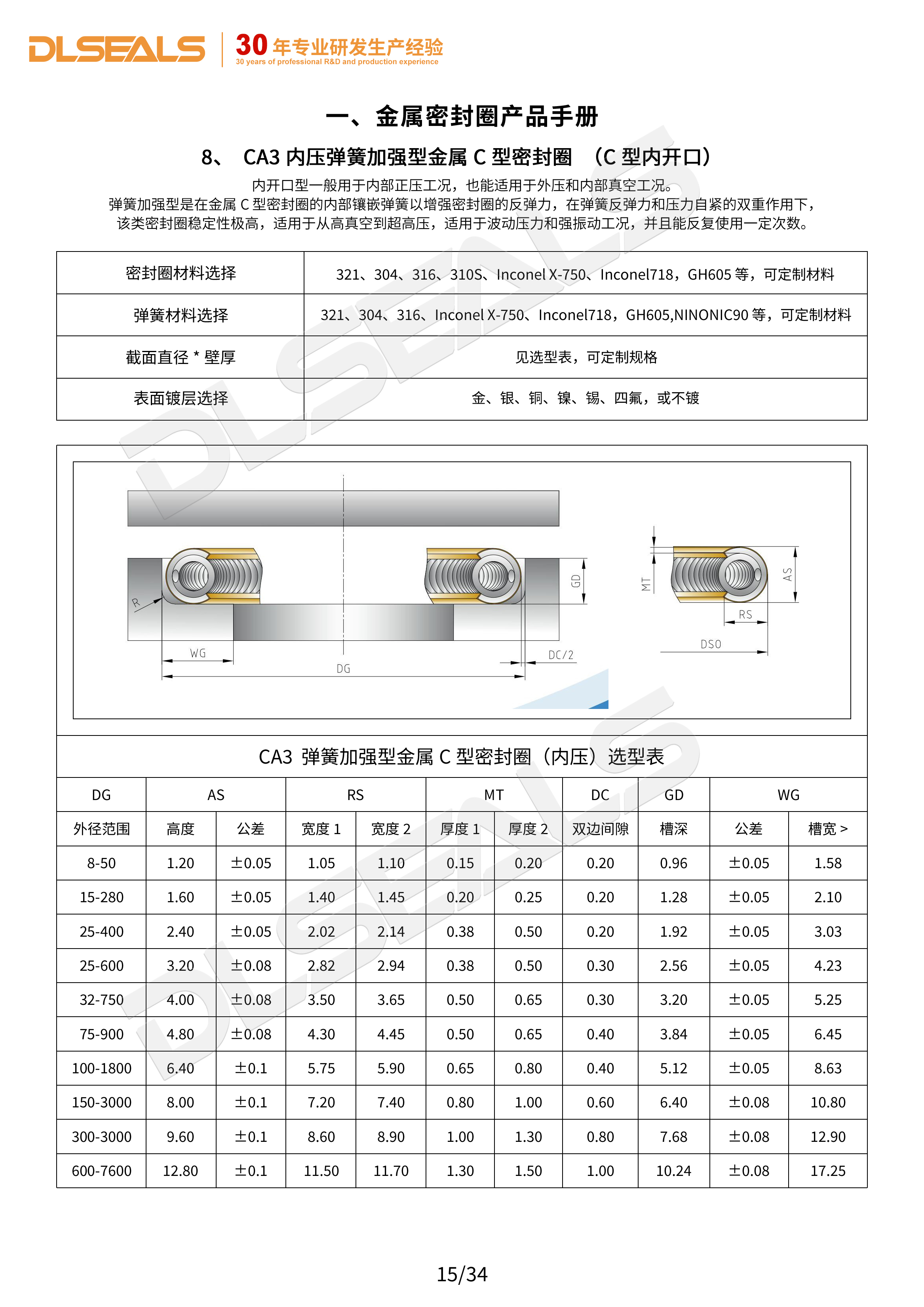 内压弹簧加强型金属C型密封圈