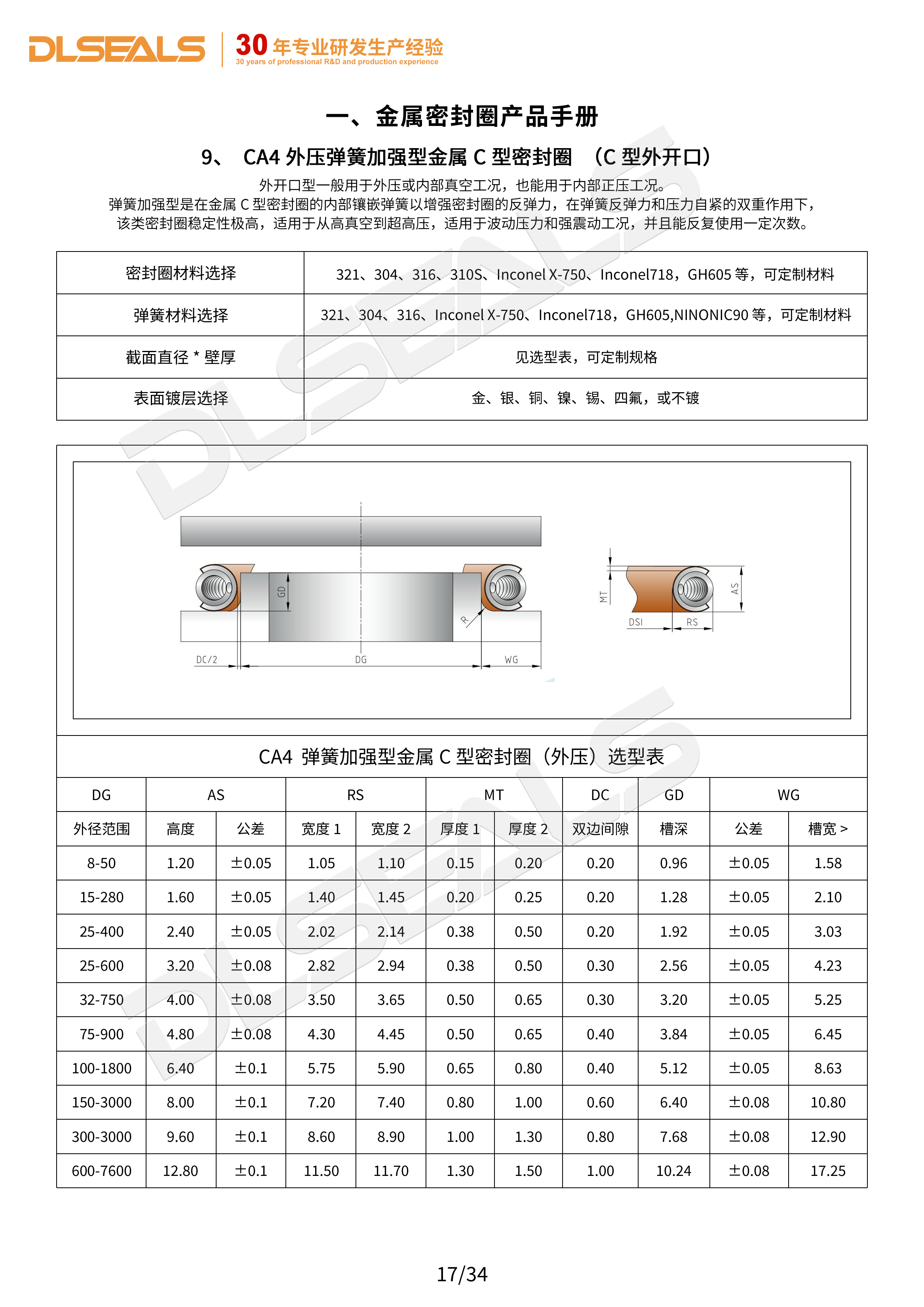 内压弹簧加强型金属C型密封圈